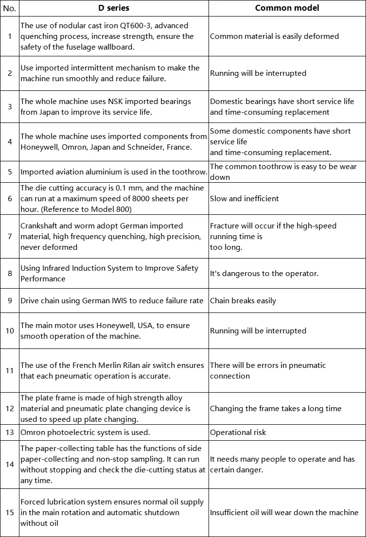 * Gelişmiş Honeywell Ana Motorunu Kullanma (İsteğe bağlı yapılandırma), kalıp kesme hızı saatte 7500 yaprak ulaşabilir.
