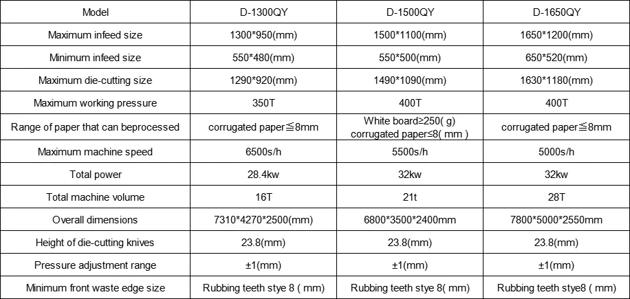 D1300QY/D1500QY/D1650Qy Ön Kenar Kağıt Besleme Die-kesme makinesi
