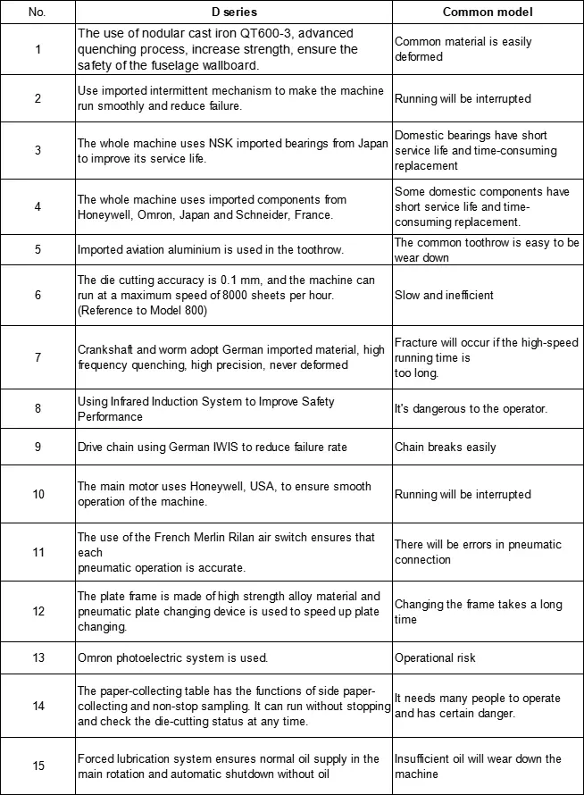 * Gelişmiş Honeywell Ana Motorunu Kullanma (İsteğe bağlı yapılandırma), kalıp kesme hızı saatte 7500 yaprak ulaşabilir.