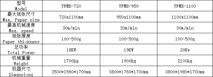 YFMB-720/950/1100 yarı-otomatik laminatör
